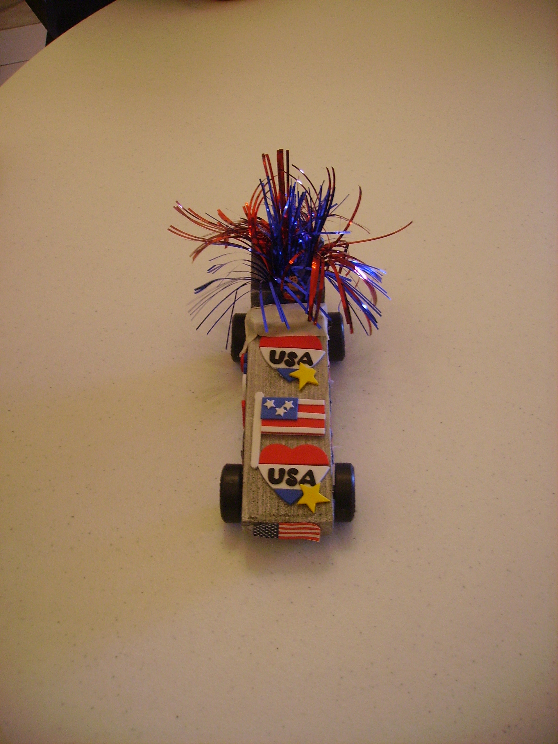 Unfortunately, I came in last place (laughing). I can tell that some parents have had lots of experience doing this. One car had “a professional car paint job” – winning “best paint job”.